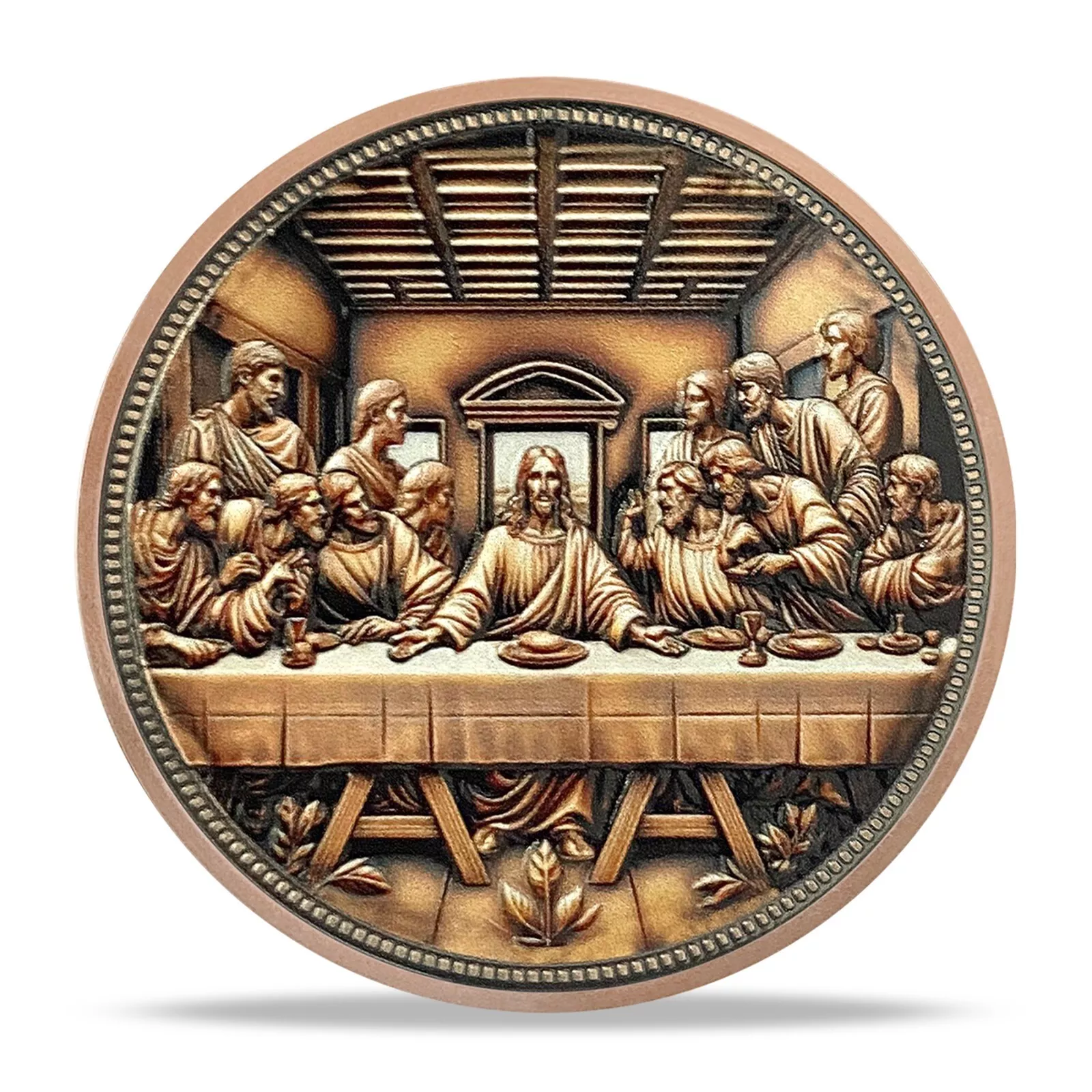 This exquisite double-sided commemorative coin is themed on the Christian sacrament, perfectly reproducing the eternal classic of "The Last Supper" and the elements of the Eucharist.
